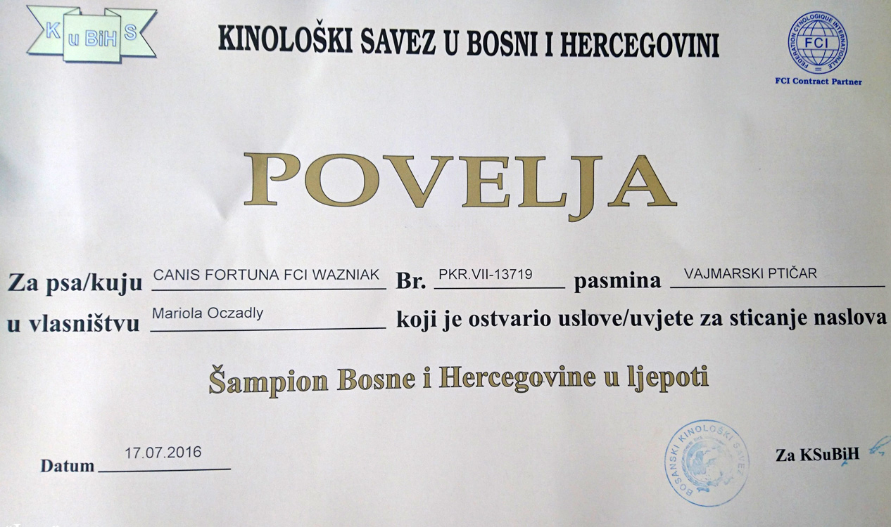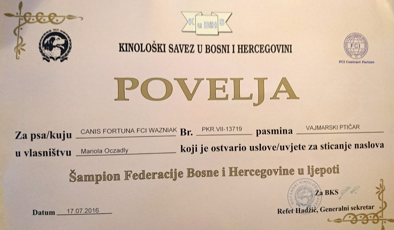 Champion Federacji BIH, Champion Czech, Champion Litwy